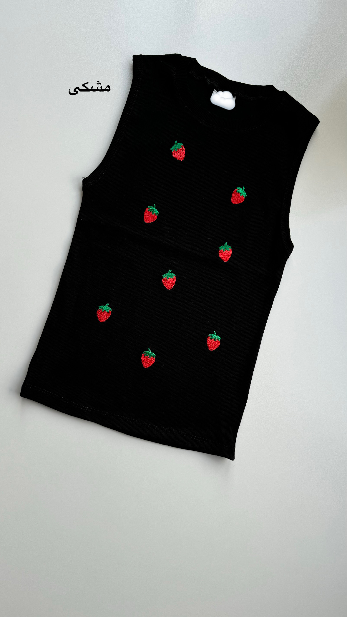 طرح توت فرنگی ها گلدوزی شده و با شست و شو پاک نمیشه