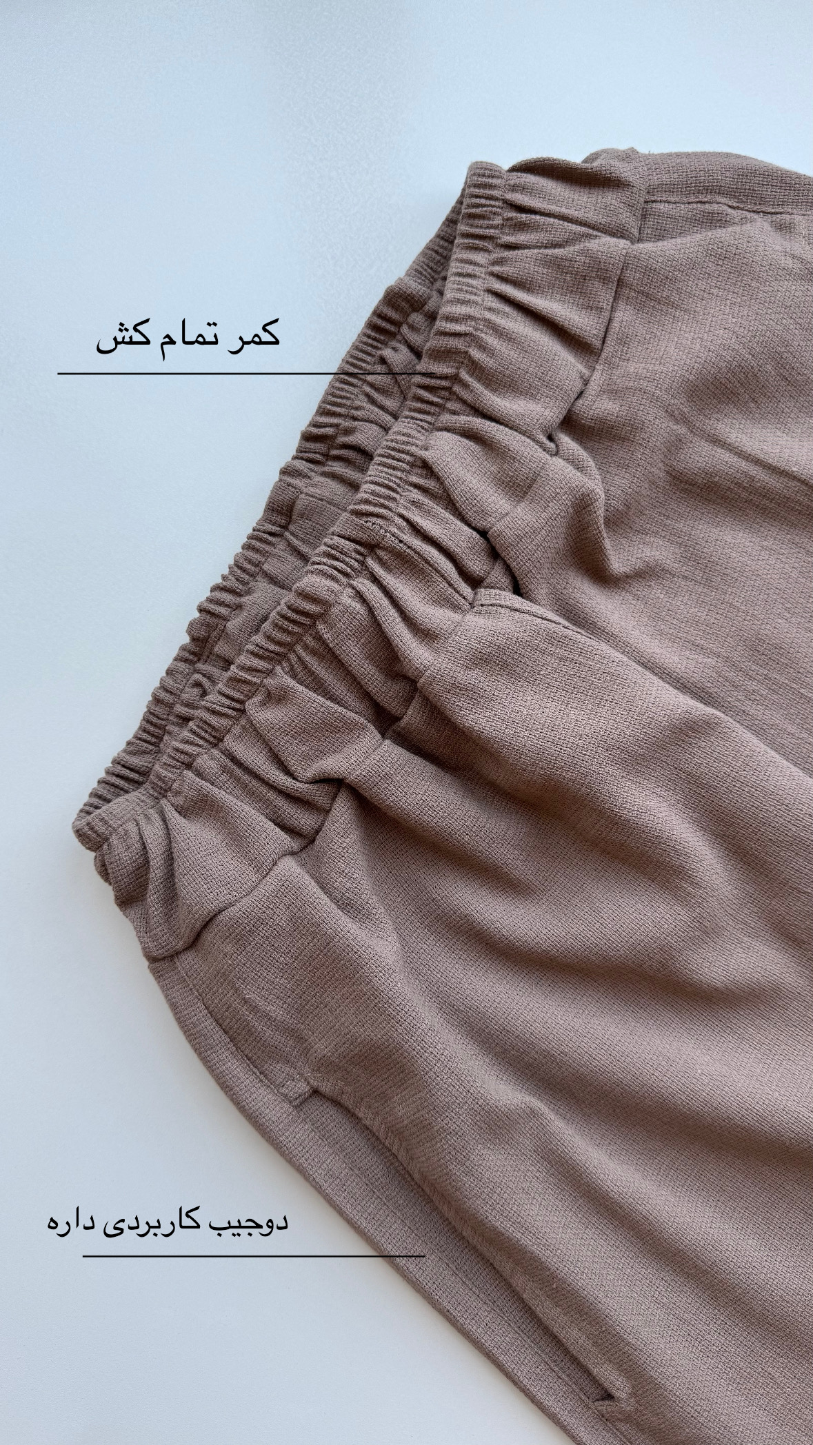 ✅ فری سایز (مناسب ۴۲ - ۴۶ ) : قد ۱۰۳ / دور باسن ۱۲۰ / دور ران ۶۶ / فاق ۳۰ / عرض دمپا ۲۸ / دور کمر بدون کشسانی ۷۰ و با کشسانی ۱۲۳