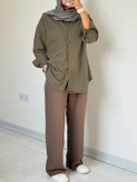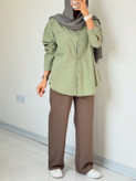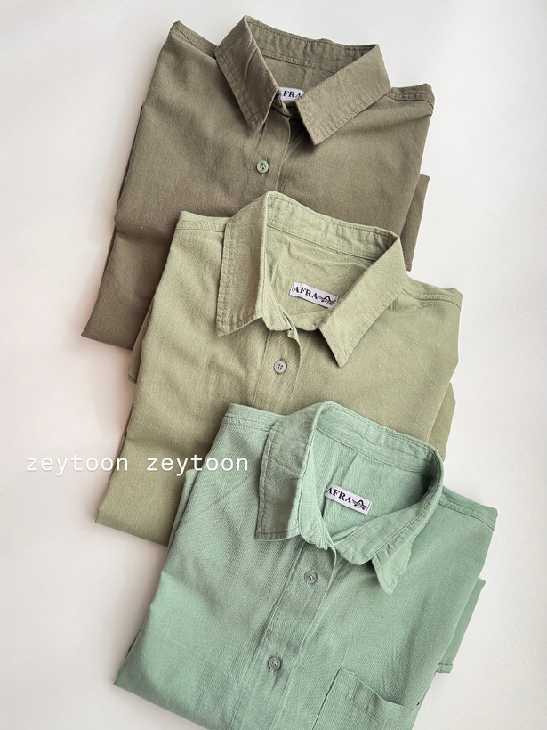 رنگ زیتونی : قد ۷۳ / دورسینه ۱۱۸ / دور باسن ۱۲۴ / قد آستین ۴۹ / دور بازو ۴۸