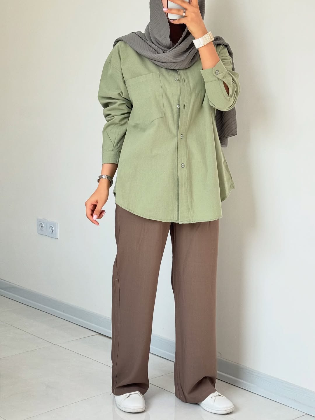 رنگ پسته ای : قد ۷۳ / دورسینه ۱۱۴ / دور باسن ۱۲۳ / قد آستین ۴۹ / دور بازو ۴۹