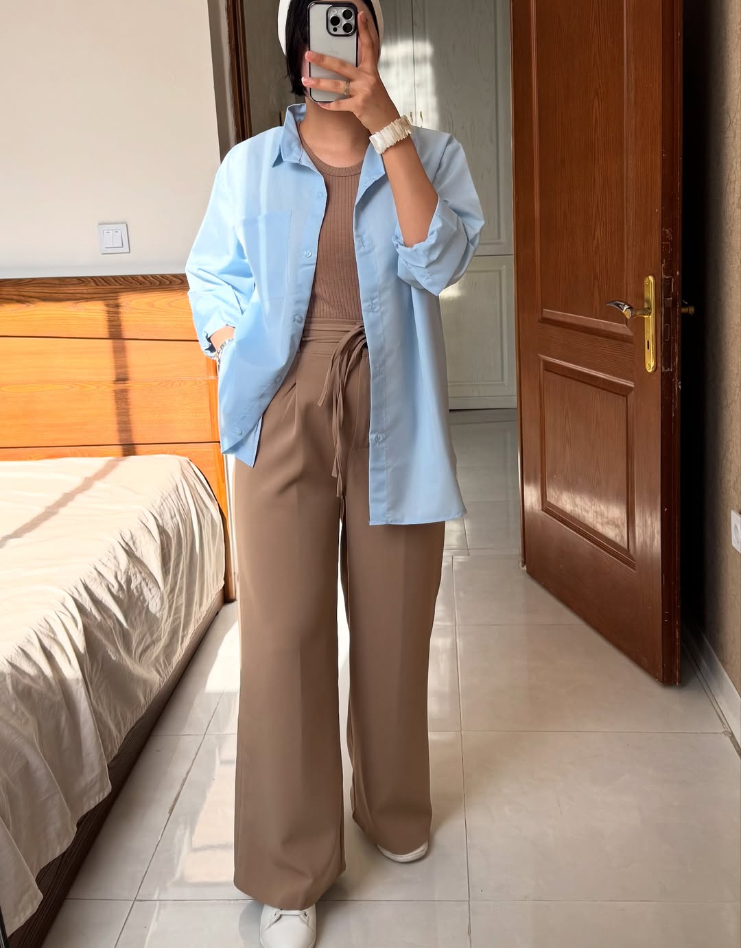 شلوار بگ مناسب استایل های رسمی و روزانه جنس کرپ مازراتی نیاز به اتوکشی روزانه نداره رنگ بندی موجود : سورمه ای سیر ، نسکافه ای ۱-۲ درجه رنگ عکسا با هم متفاوت هست مرسی که درک میکنید قبل از ثبت اندازه ها رو لطفا با متر با خودتون چک کنید قشنگا رنگ نسکافه ای : سایز ۱ (مناسب : ۳۸ ۳۴ ) : قد ۱۰۵ / دور باسن ۹۵ / دور ران ۵۸ / عرض دمپا ۳۰ / قد فاق ۲۸ / دور کمر بدون کشسانی ۵۸ و با کشسانی ۸۸ سایز ۲(مناسب :۴۲ ۴۰ ) : قد ۱۰۵ / دور باسن ۱۰۵ / دور ران ۶۲ / عرض دمپا ۳۲ / قد فاق ۳۰ / دور کمر بدون کشسانی ۸۵ و با کشسانی ۶۴ سایز ۳(مناسب : ۴۴ ۴۲ ) : قد ۱۰۲ / دور باسن ۱۱۰ / دور ران ۶۵ / عرض دمپا ۳۲ / قد فاق ۳۰ / دور کمر بدون کشسانی ۶۹ و با کشسانی ۱۰۰ ________________________________________________