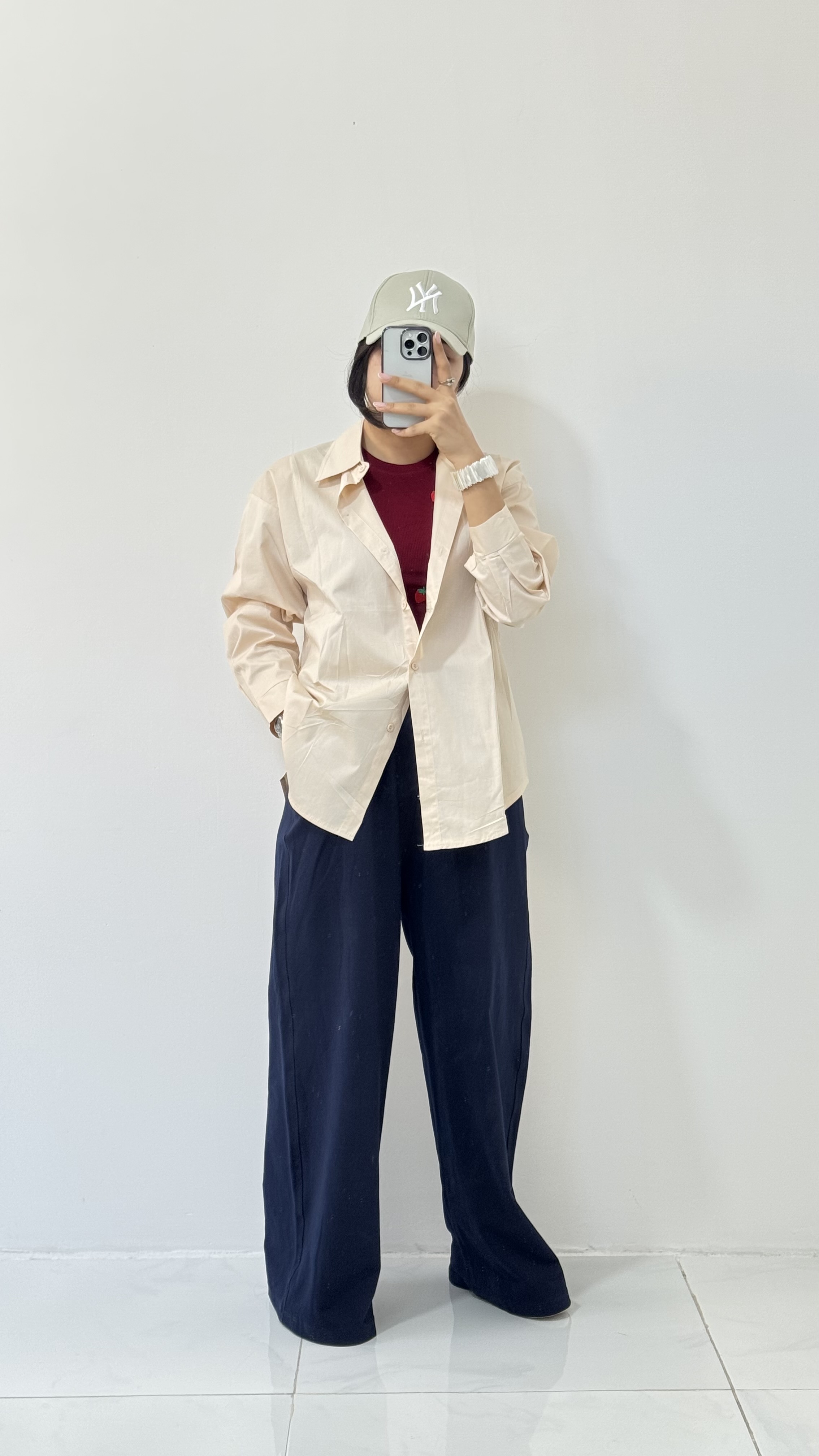 شومیزی که میتونی برای زیر وست ، کت ، دورس بپوشی و برای بهار و تابستون هم بپوشی. جنسش کتان صابونی نازک وارداتی ودوخت تمیزی داره.