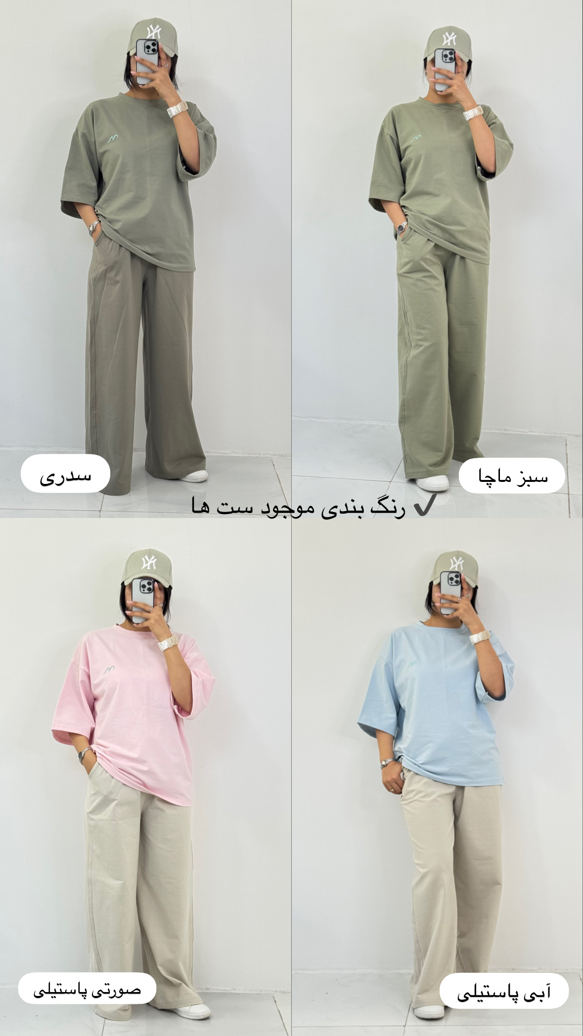 (شلواری که با تیشرت ها استایل شده موجود و قابل سفارش است اسم شلوار : شلوار کلوین)