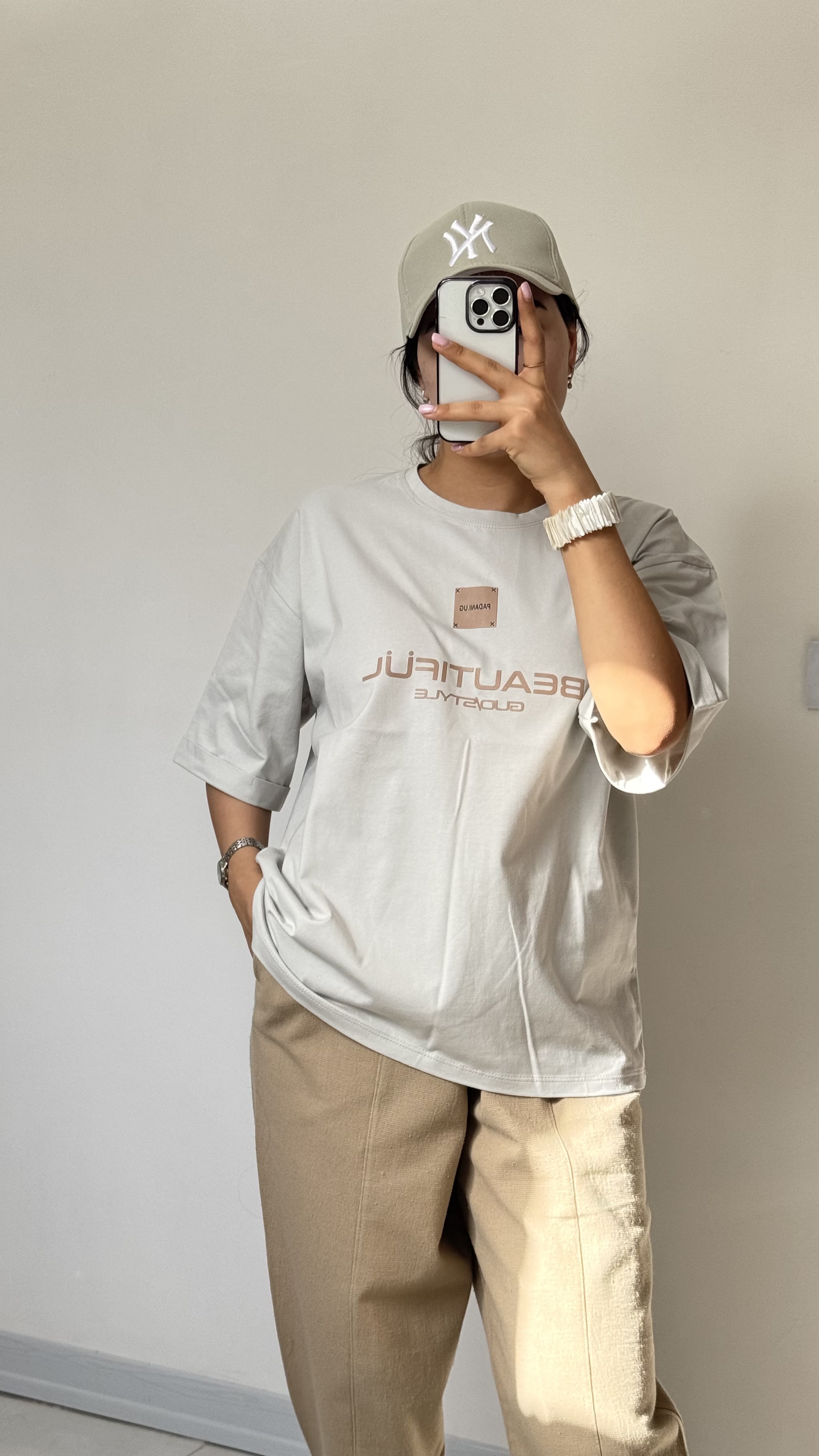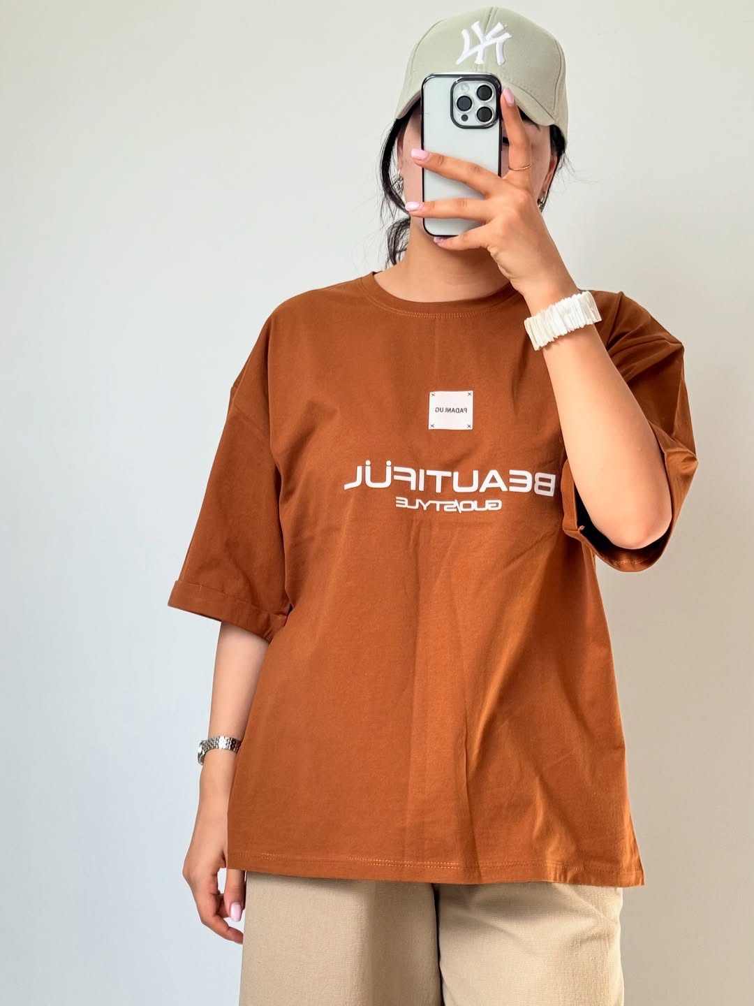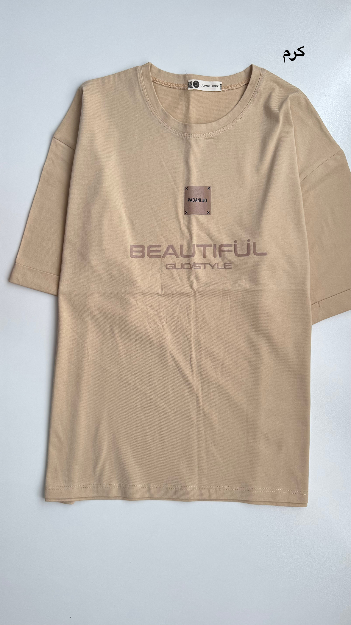 تیشرت باکسی بیوتی : جنس ۱۰۰٪ نه پنبه باکیفیت و لطیف جنسیت نداره فری سایز ۳۴ - ۴۴ جنس ۱۰۰٪ نخ پنبه، قد ۶۶، قد آستین ۲۴، دورسینه ۱۱۳،