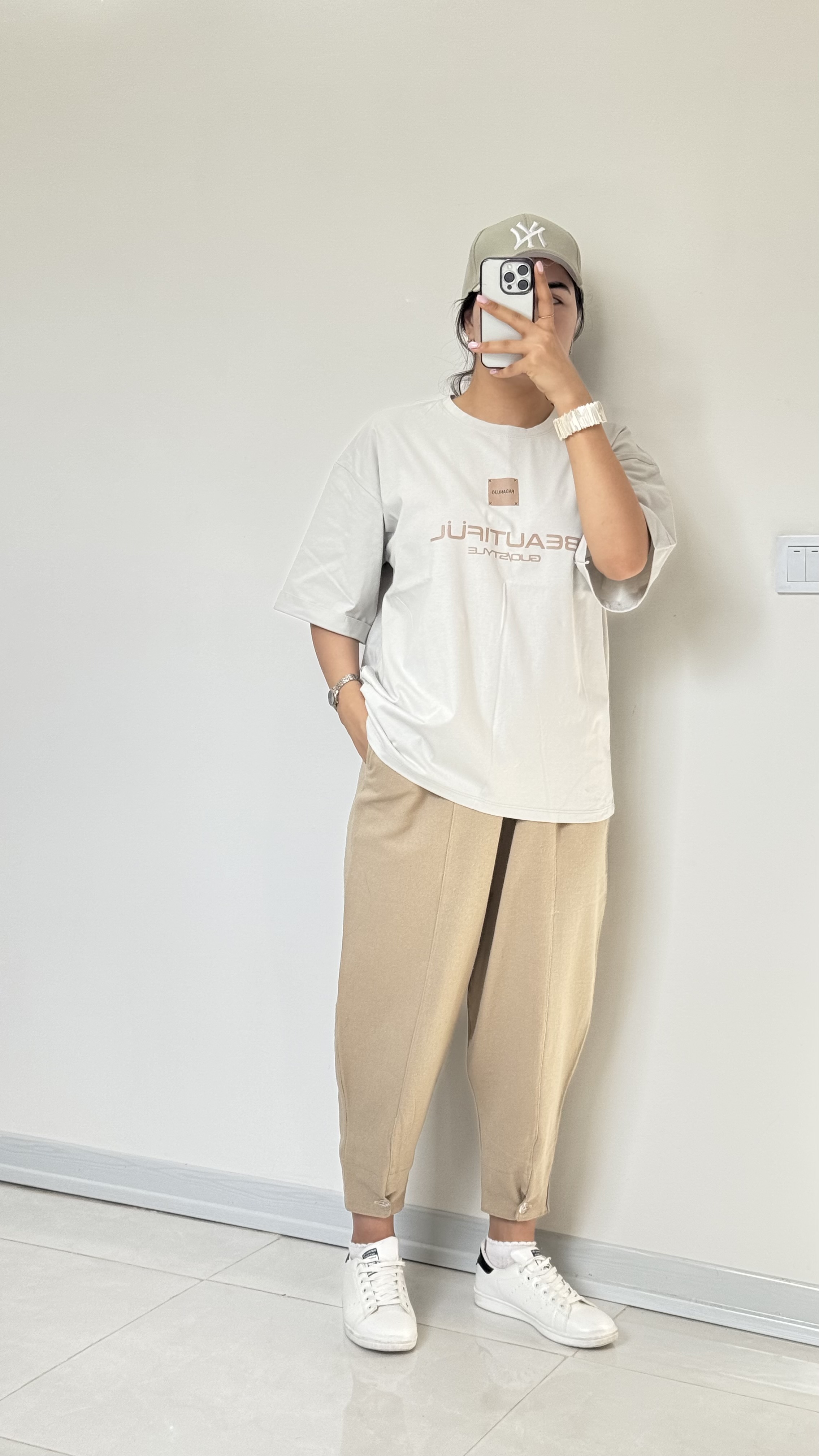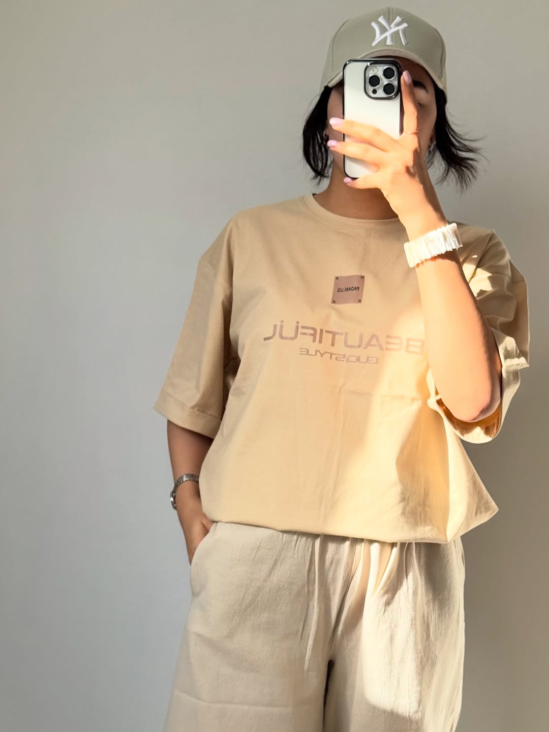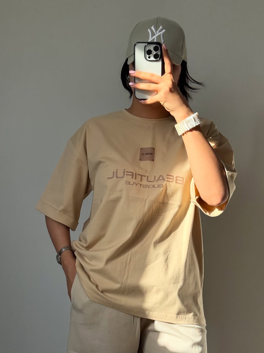 تیشرت باکسی بیوتی : جنس ۱۰۰٪ نه پنبه باکیفیت و لطیف جنسیت نداره فری سایز ۳۴ - ۴۴ جنس ۱۰۰٪ نخ پنبه، قد ۶۶، قد آستین ۲۴، دورسینه ۱۱۳،