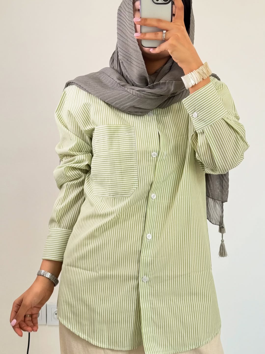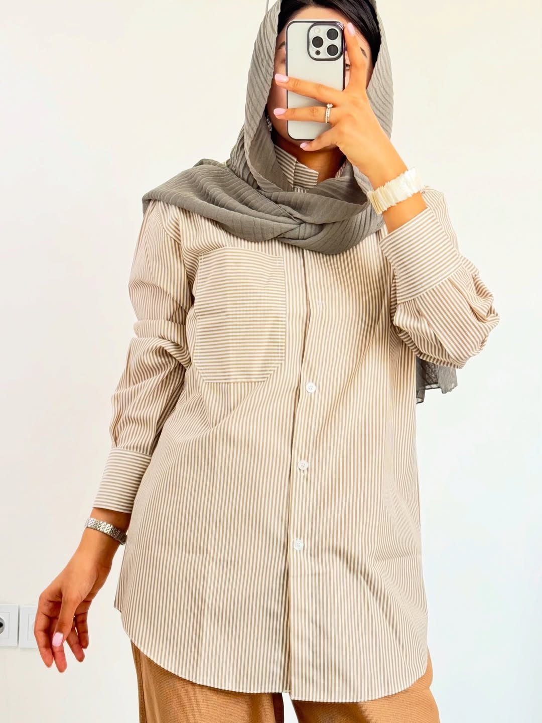 این شومیز با مدل یقه و آستینهای شیک گزینه مناسبی برای زیر کت یا زیر وست است. جنس آن پوپلین سبک و خنک است و در رنگهای پستهای، کرم کاربنی و خاکستری موجود است.